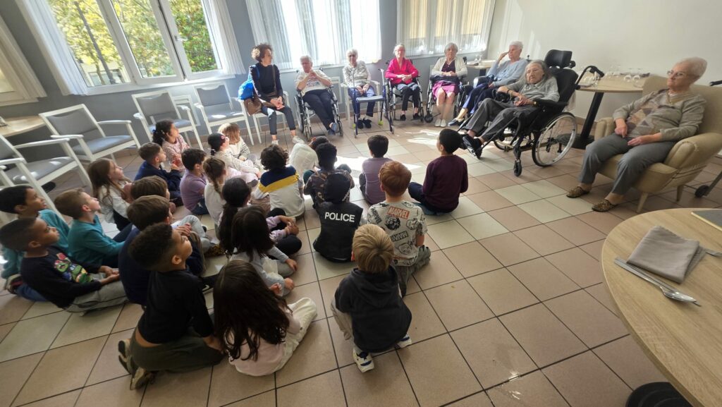 Le groupe des 7-8 ans du centre de loisirs de l’Espace Boris Vian s’est rendu l’après-midi à la résidence EMEIS Fauriel (EHPAD) pour un beau moment de rencontre inter-générationnel