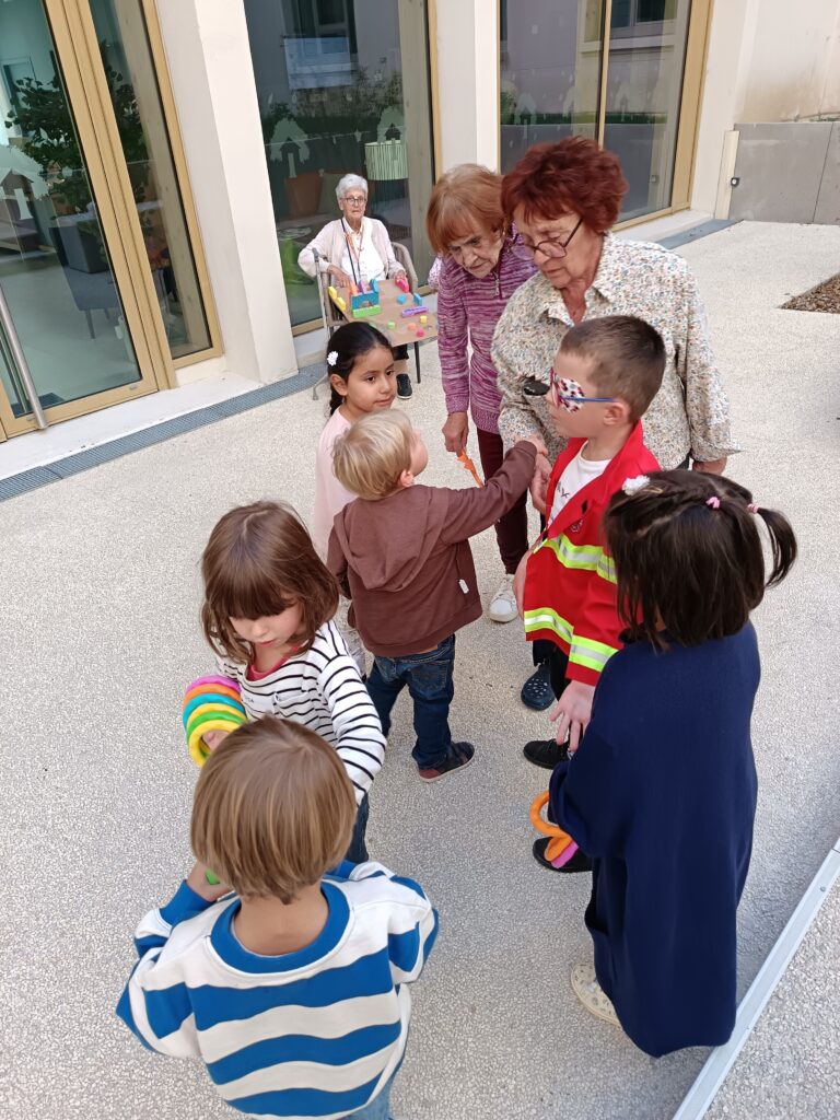 Le groupe des 3-5 ans du centre de loisirs de l’Espace Boris Vian s’est rendu à la résidence Les Jardins d’Arcadie Libération/Grande Poste.