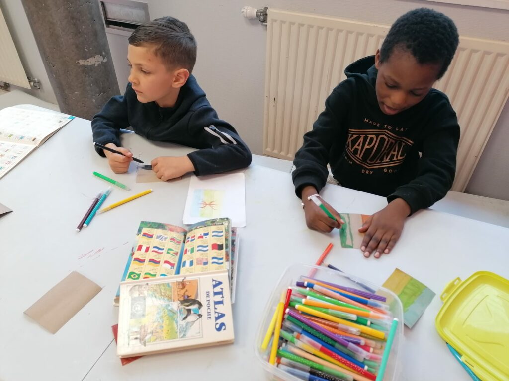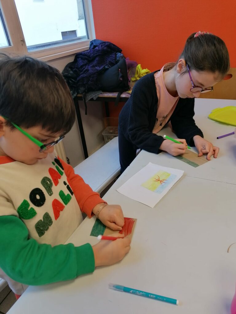 Ce mercredi chez les 6-7 ans, avec Kahina et Céline, les enfants ont mis une touche finale aux réalisations qu’ils présenteront mercredi prochain dans le cadre de l’exposition consacrée au Printemps des Poètes et à son thème annuel : « Liberté, force vive, déployée ».