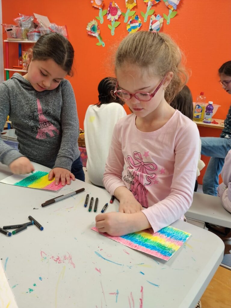 Le groupe des 6-7 ans s’est lancé dans la création de cartes magiques à gratter.