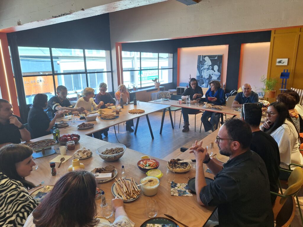 À 13h nous avons partagé un délicieux repas constitué des plats cuisinés et apportés par chaque participant puis pour finir un petit débriefing de la journée et de ses possibles suites.
