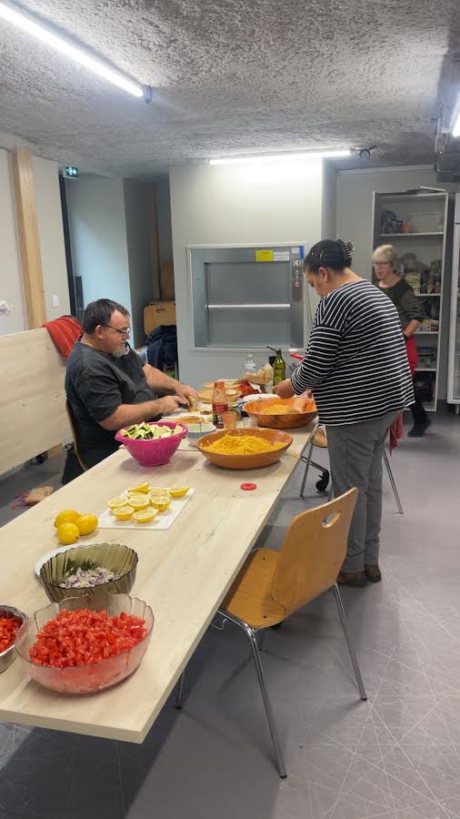 Le vendredi 17 octobre dernier, pour l’ouverture de la saison des ateliers collectifs, Charlotte Coutanson, la référente famille, a proposé un repas partagé, réunissant plusieurs personnes qui avaient chacune préparé et apporté quelque chose.