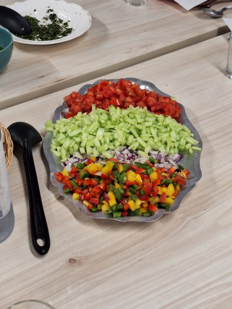 Nous avons pu déguster la délicieuse salade ukrainienne de Nataliya et de Katarina, la moussaka dont la recette nous a été confiée par Vassili, les pâtisseries orientales faites maison, le tout dans une ambiance conviviale et détendue.