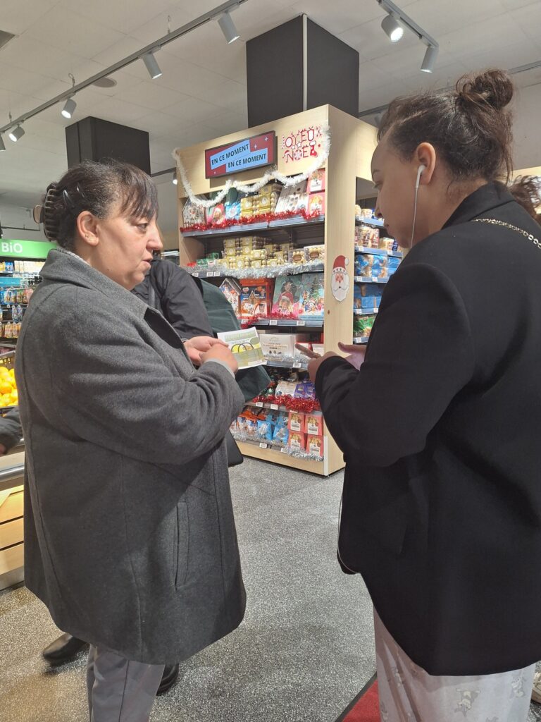 Les bénévoles du Cabas, l’épicerie solidaire et cuisine de quartier de l’Espace Boris Vian sont sur le pont depuis 9h30 ce matin, à l’entrée du magasin My Auchan de la place Jean Moulin…