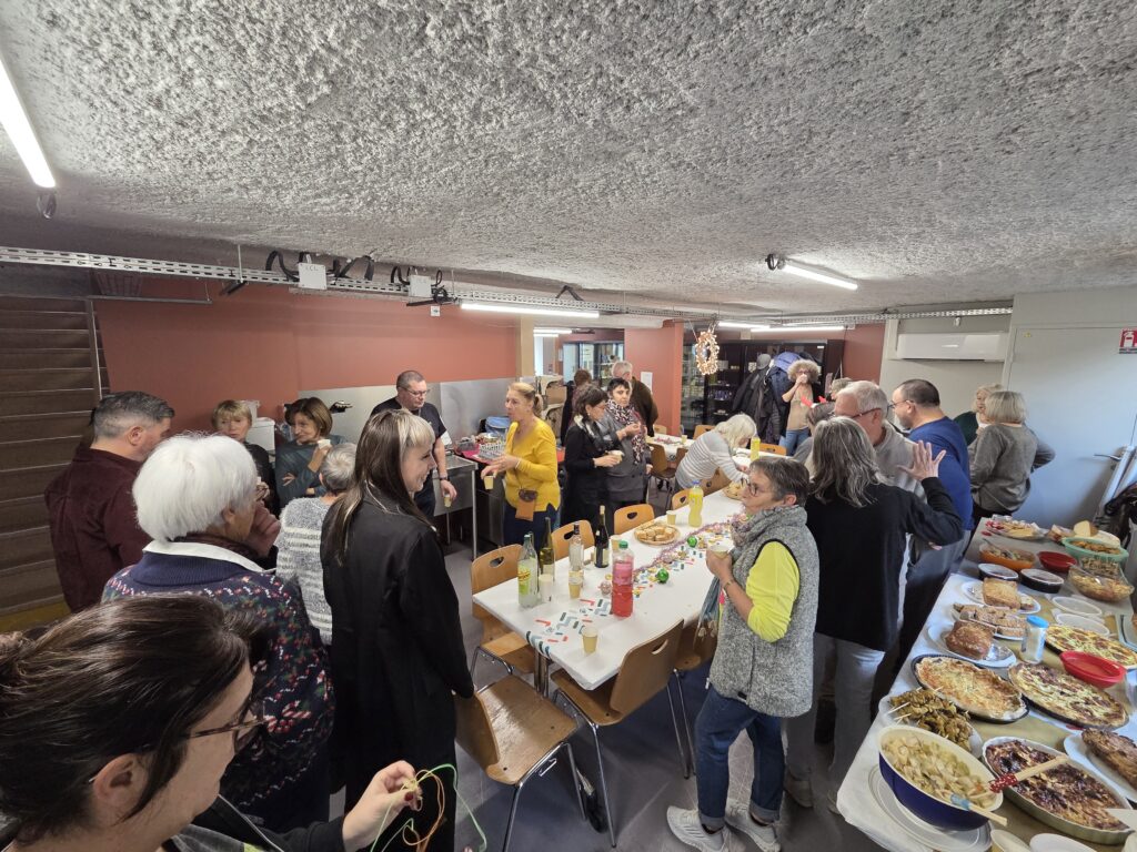 Merci aux bénévoles et à Charlotte, notre CESF pour ce repas digne d’une grande table, à Siham Labich, adjointe aux centres sociaux et à la Politique de la Ville pour être venue partager ce moment avec la vingtaine de personnes présentes, à Agnès, Présidente de l’Espace Boris Vian et Claire, administratrice engagée du centre social et à Frédéric Durand, Adjoint aux Solidarités pour sa visite et sa présence.