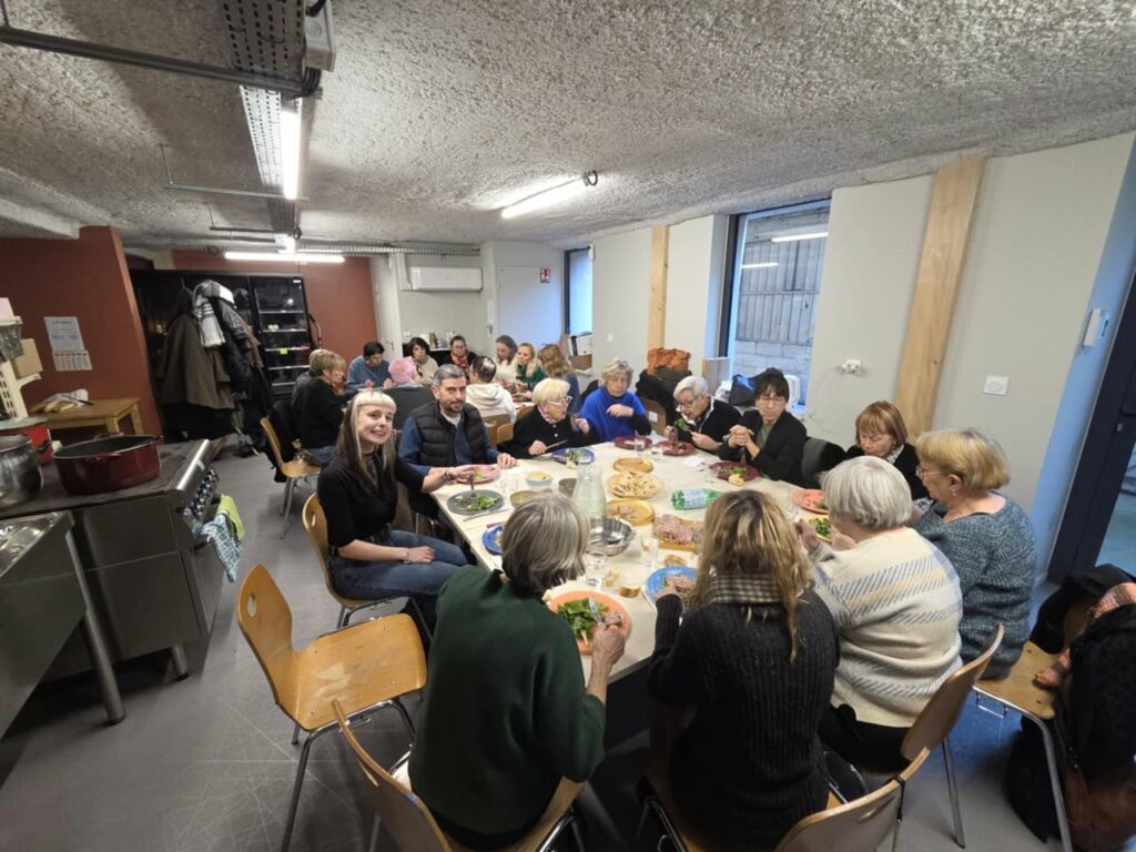 Ce mercredi 10 décembre 2025 midi, tous les bénévoles du Cabas, l’épicerie solidaire et cuisine de quartier de l’Espace Boris Vian s’étaient donné rendez-vous sur place pour un repas partagé de fin d’année … Et ça fait du monde….