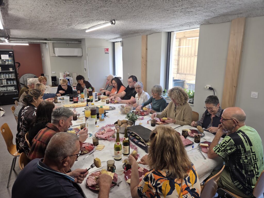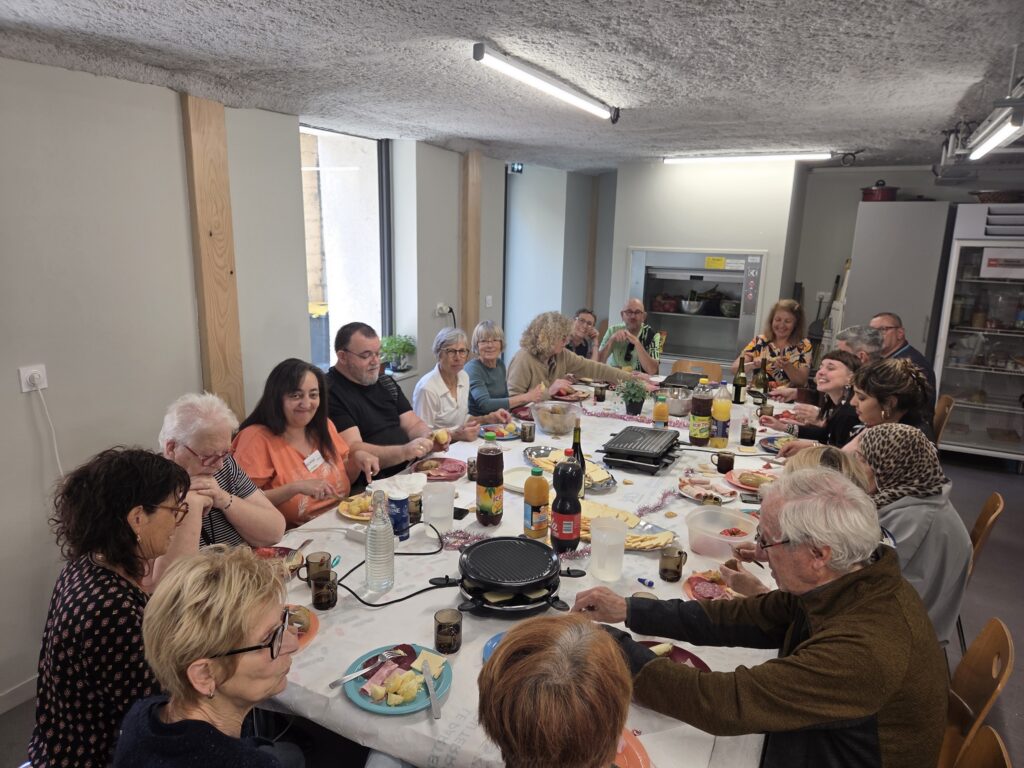 La mise en place de cette raclette au sein du cabas a réuni une vingtaine de bénévoles autour d’un moment chaleureux et convivial. Dans une ambiance détendue et festive, chacun a pu se retrouver, échanger et partager bien plus qu’un simple repas. Entre la raclette généreuse, la compote et les desserts faits maison, ce midi a été marquée par la simplicité, la bonne humeur et le plaisir d’être ensemble. Un beau moment de retrouvailles qui renforce les liens et l’esprit d’équipe.