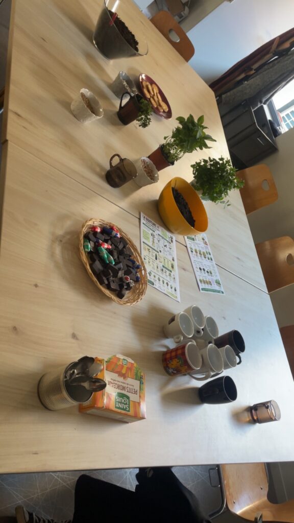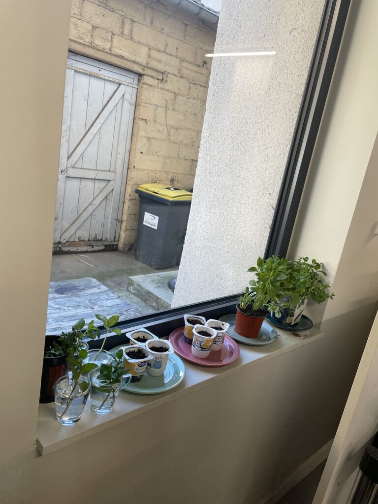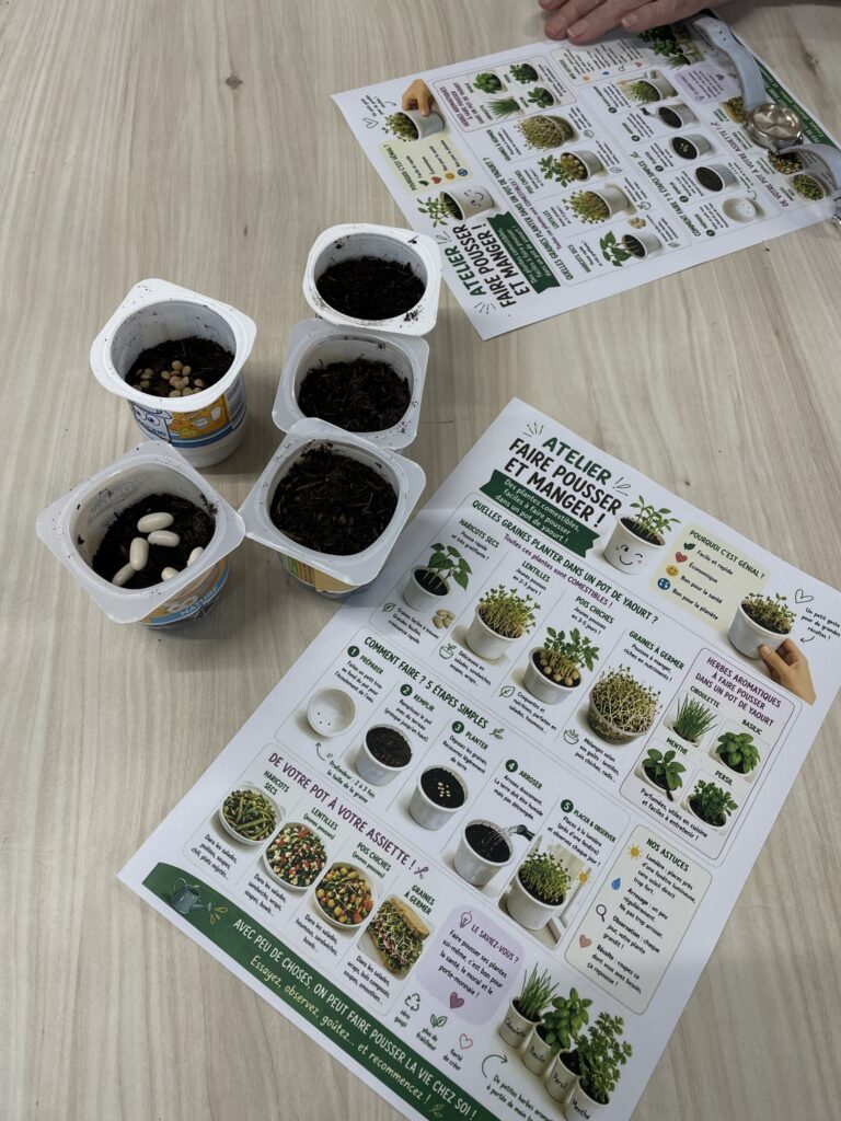 Atelier collectif sur la thématique « jardins de balcon » aujourd’hui au Cabas, l’épicerie solidaire et cuisine de quartier de l’Espace Boris Vian ….ou quelques trucs pour cultiver des aromatiques dans un petit espace…