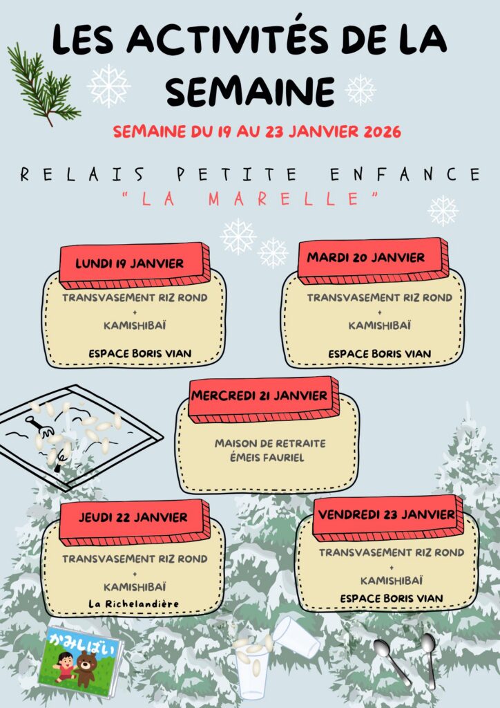 Petit retour sur les activités du mois de janvier mise en place par notre animateur du relais Jean baptiste. En passant par ATELIER SABLE MAGIQUE COLORÉ, ANNIVERSAIRE DE 1 AN DU PETIT ANTONIN, ATELIER ARGILE AVEC SANDRA GARGOWITSCH, PLASTICIENNE, HISTOIRES EN KAMISHIBAÏ AVEC THÉÂTRE JAPONAIS (BUTAÏ),