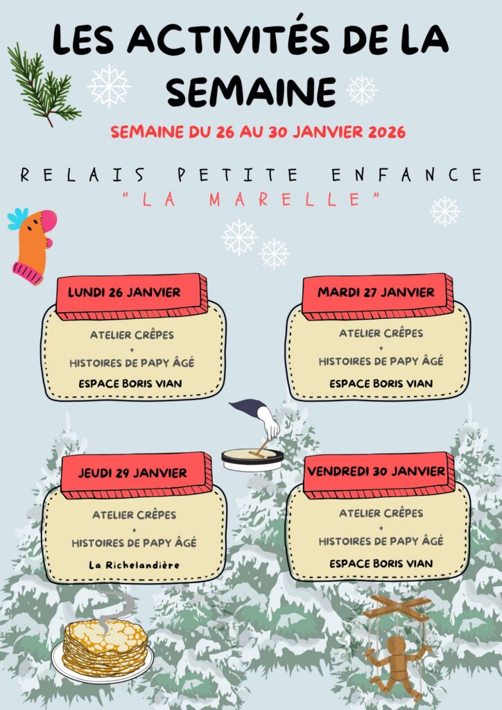 Bientôt à l’Espace Boris Vian …Le Relais Petite Enfance « la Marelle » propose une conférence sur la littérature jeunesse le 2 mars à 19h …